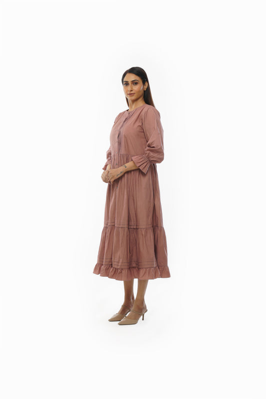 Pink Piltex Round Neck Dress