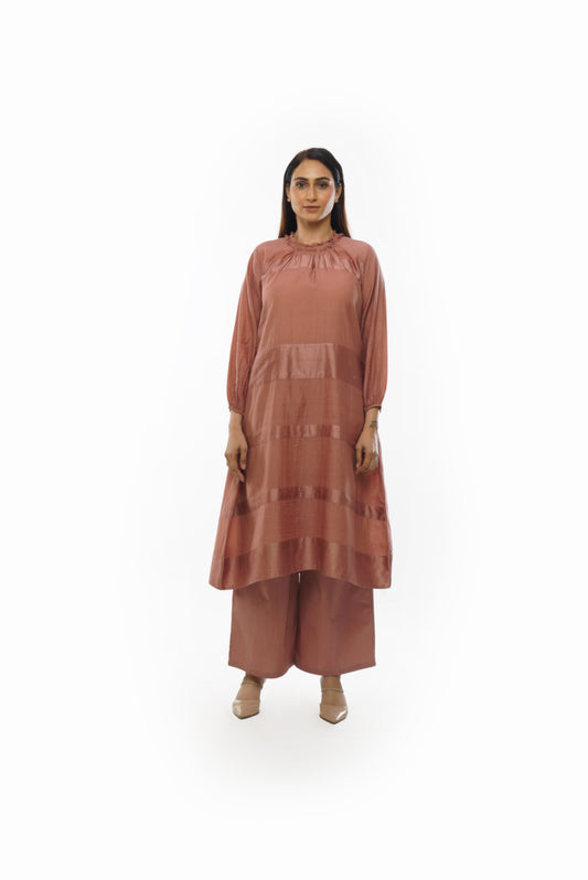 Pink Piltex Round Neck Dress Co-ord