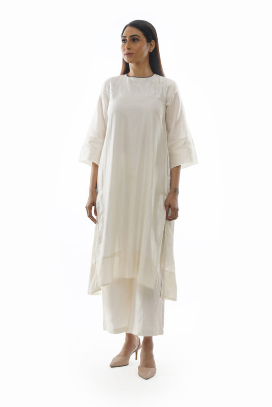 Bright White Chanderi Embroidery & Pleated Dress