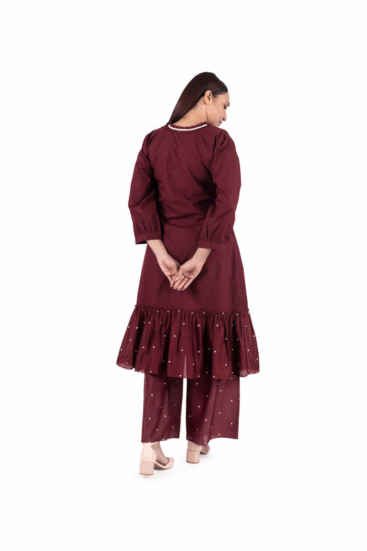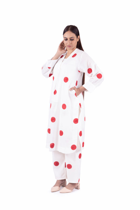 Brick Round Neck Dot Dress Co-ord