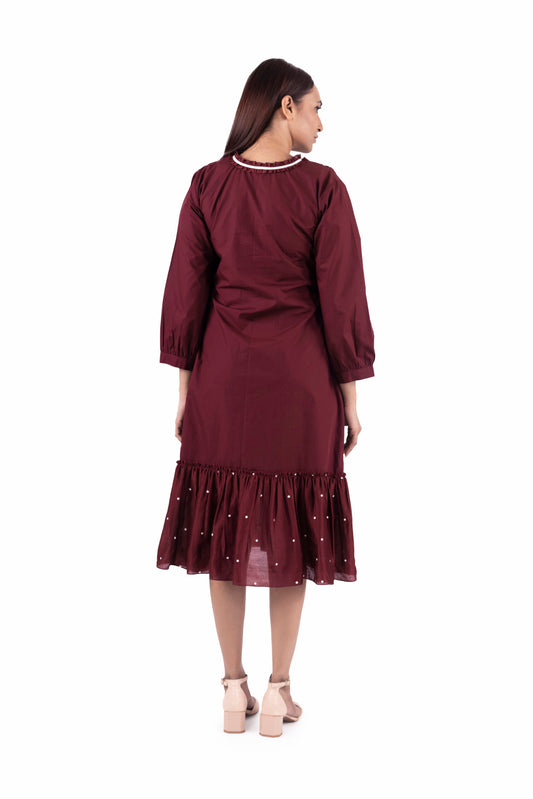 Brick Round Neck Dot Dress Co-ord With Scraf