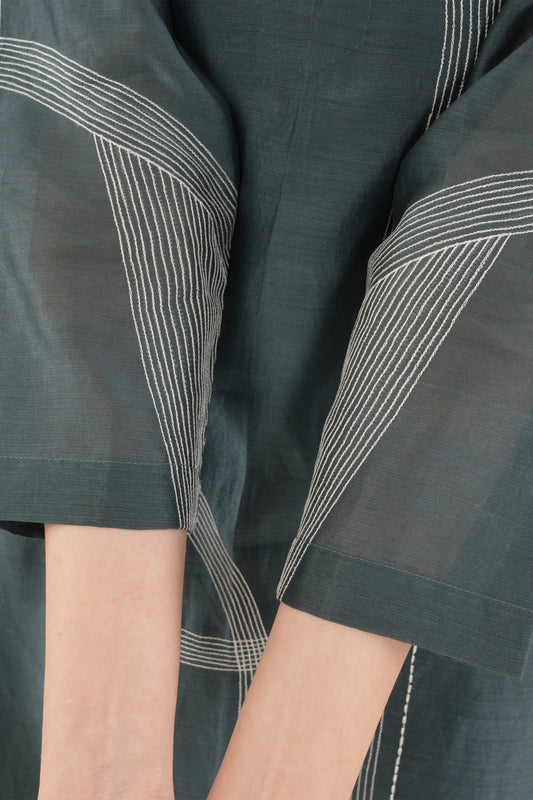 Khat olive Green Embroidery Dress with Bottom Co-ord