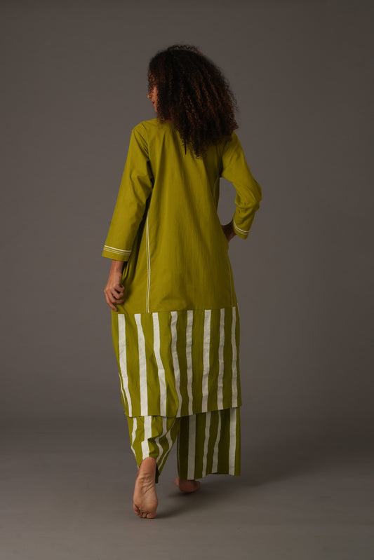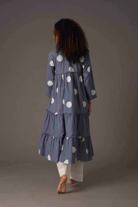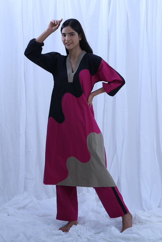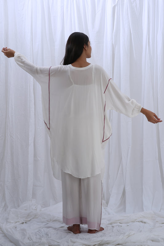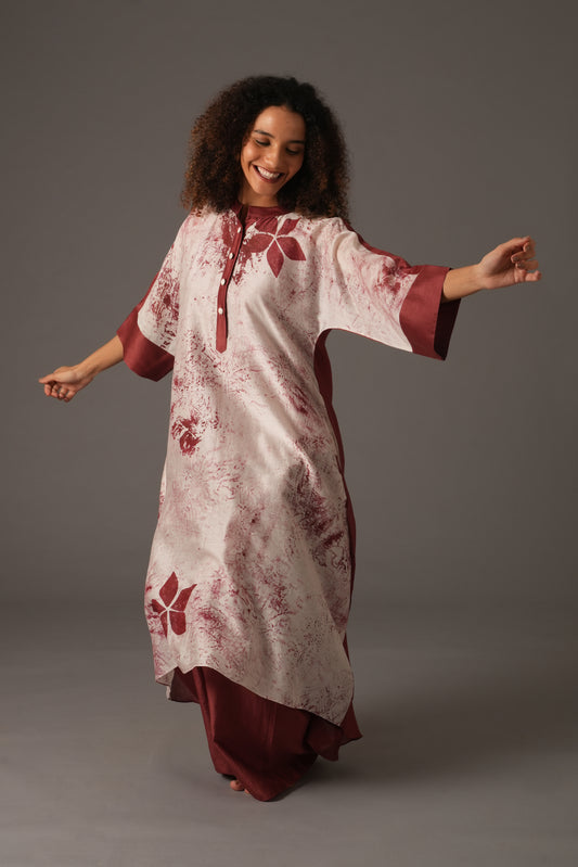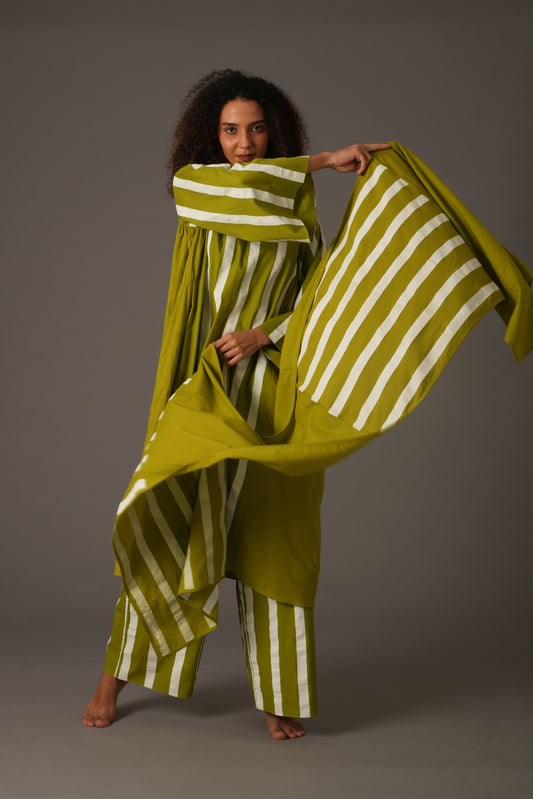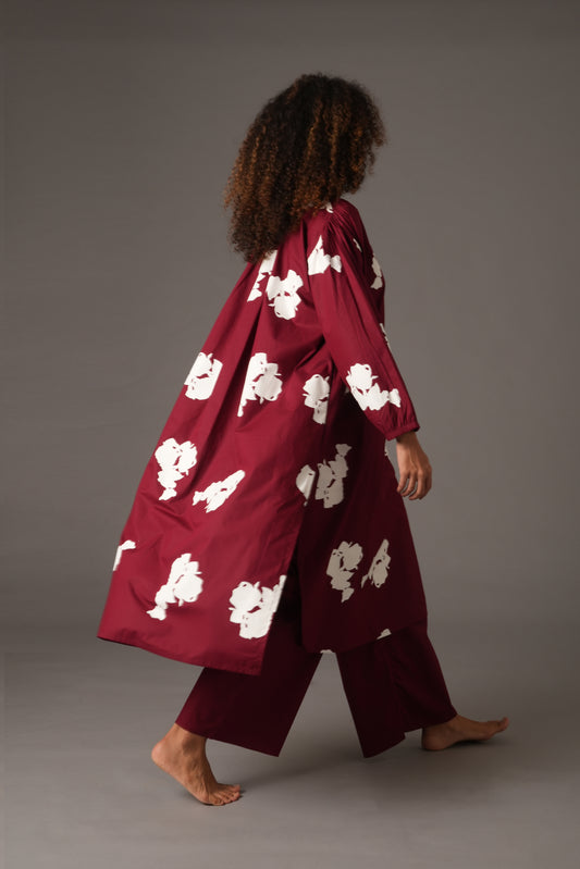 Texcher Print Gather's collar Dress with Pant & Scarff