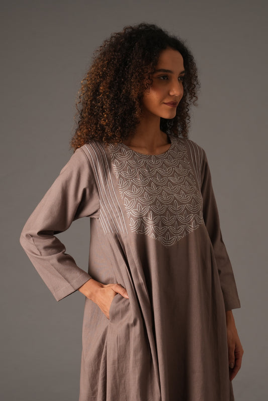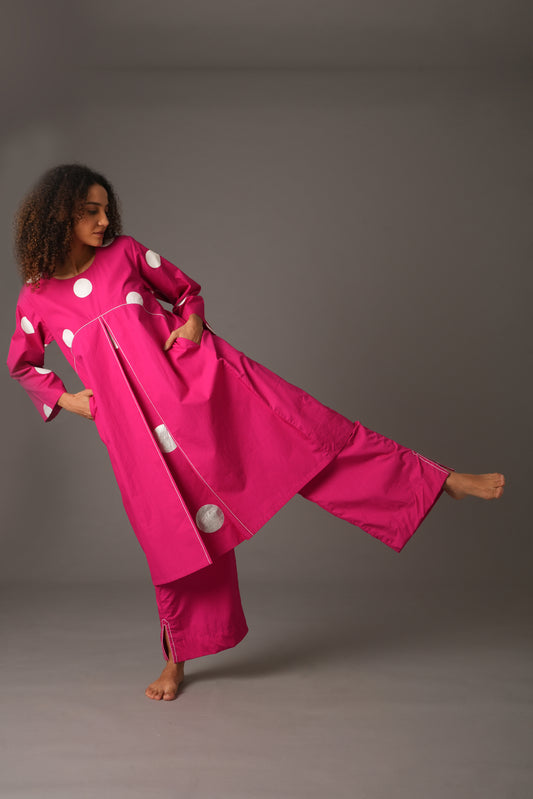 Texcher Print Round Neck Pleated dress with Pant & Scraff