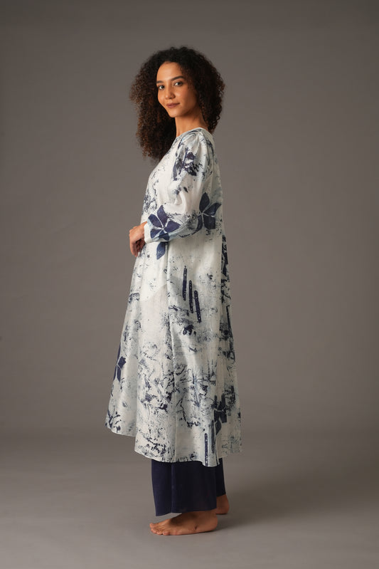 Texcher Print Round Neck Back Pleated Dress with pant & Scarff
