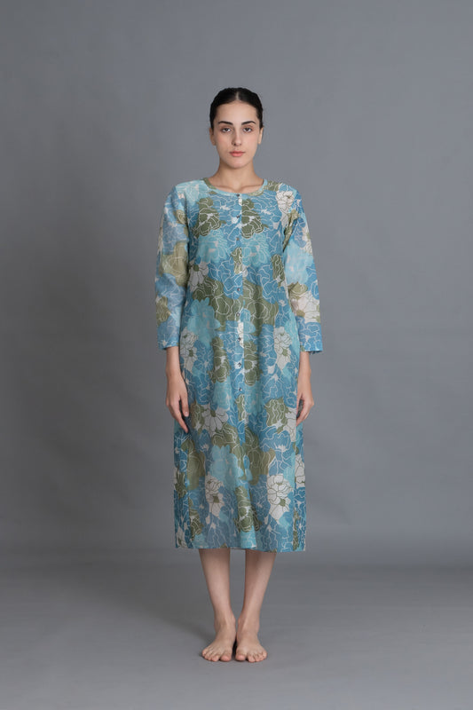 Ocean Blue Floral Print Kurta