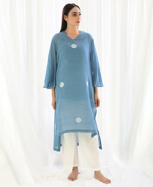French Blue Wide Sleeve Kurta Set