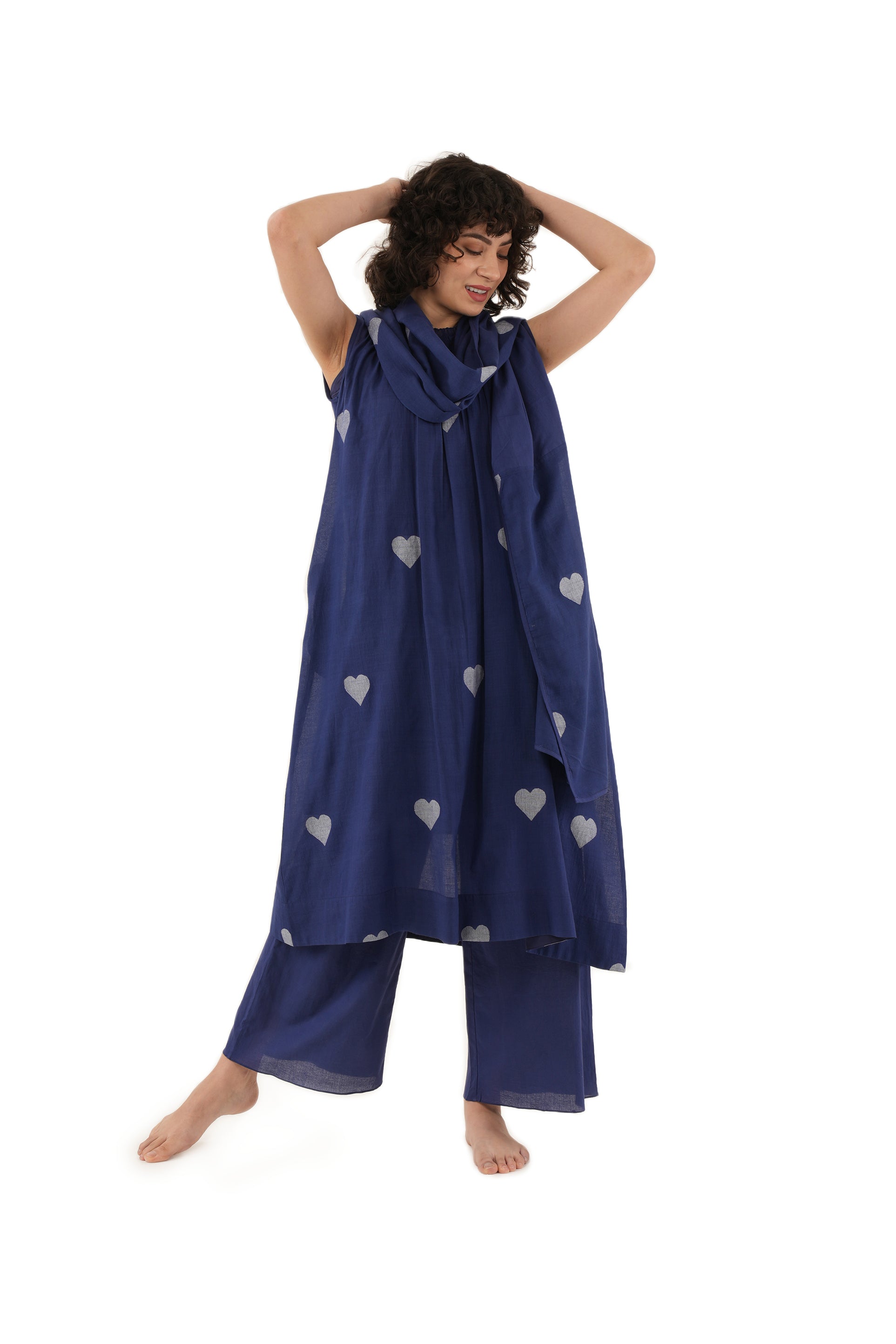 Navy Blue Heart Motif A-line Frill Dress Co-ord