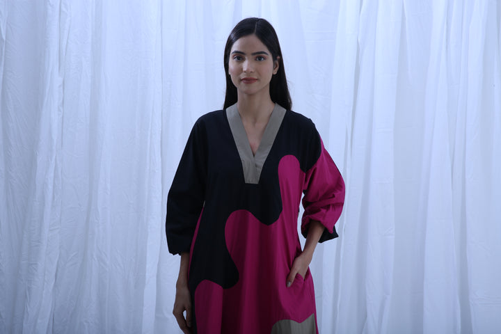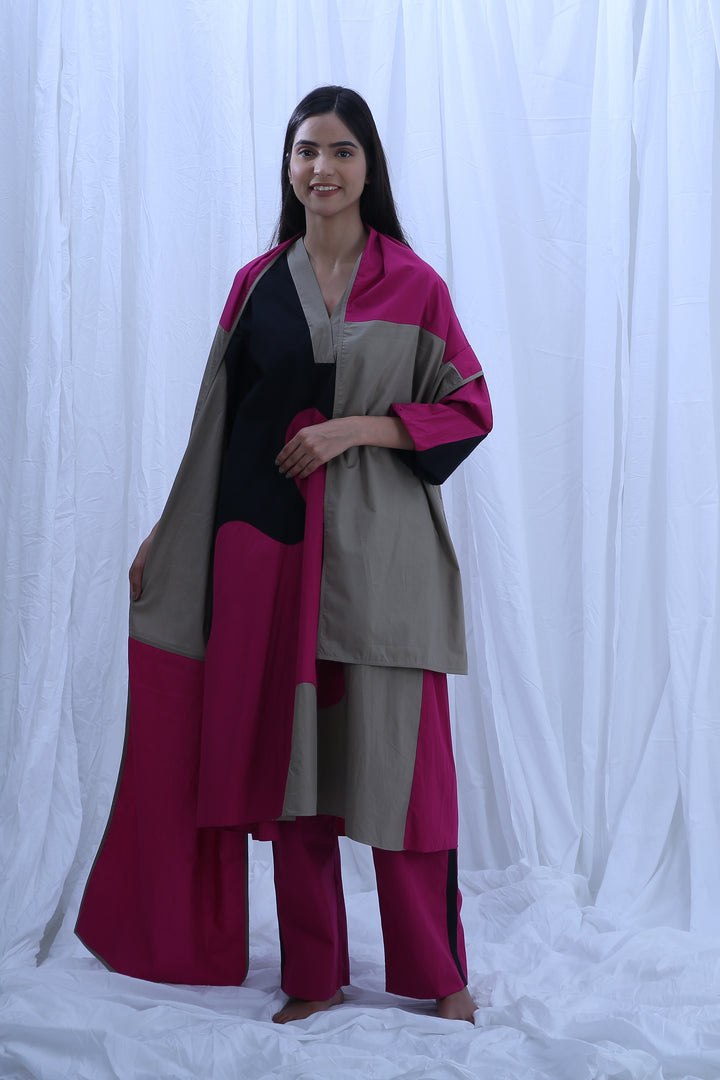 This chic Poplin Cotton set is available in Clary Sage, Pinka, and Black colors. The dress has a length of 44 inches, while the bottom has a length of 38 inches.