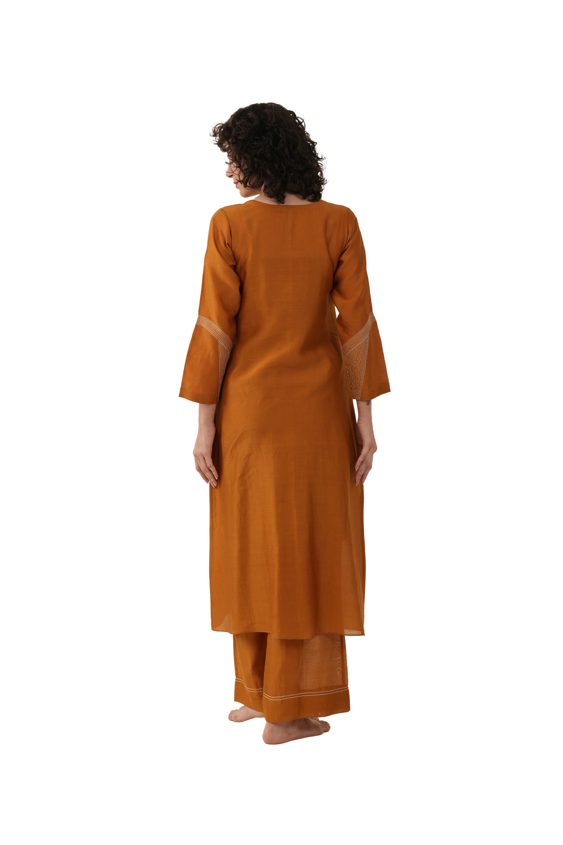 Rust Hand-Embroidered Straight Kurta with Bottom