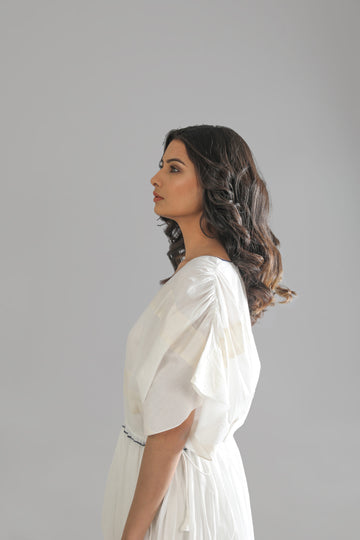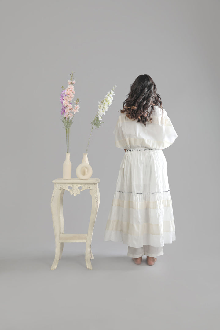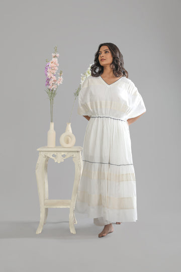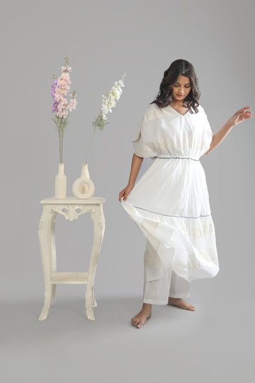 Crafted from 100% Cotton & Silk, this elegant Kaftan in Bright White features a graceful design with a Full Length of 48'' and a Regular Fit for all-day comfort.